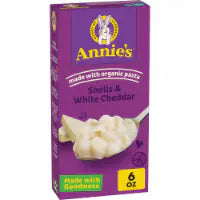 Indulge in Annie's White Cheddar Shells Mac and Cheese Macaroni and Cheese Dinner, made with real white cheddar cheese and organic pasta. With no artificial flavors, synthetic colors, or preservatives, enjoy a delicious and wholesome meal that's ready in just minutes. Satisfy your cheesy cravings with every forkful.