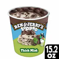 Indulge in the perfect blend of mint and chocolate with Ben & Jerry's Topped Thick Mint Ice Cream Pint. Made with 100% natural ingredients, enjoy the creamy and rich taste without any artificial flavors or preservatives. Satisfy your cravings with a scoop of this delicious treat.