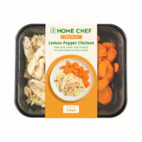 Indulge in our Home Chef Heat And Eat Lemon Pepper Chicken with Rice And Honey Roasted Carrots. Made with tender chicken, perfectly cooked rice, and sweet honey roasted carrots, this dish is a flavorful and convenient meal option. No prep or clean-up required, just heat and enjoy!