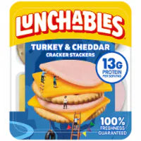 From the trusted Lunchables brand, enjoy a satisfying and delicious snack with our Turkey & Cheddar Cheese with Crackers Snack Kit. Perfect for on-the-go, this pack includes real turkey, cheddar cheese, and crackers for a balanced and convenient meal. No preparation or refrigeration required.