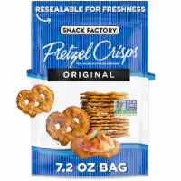 Introducing Snack Factory® Original Pretzel Crisps, the perfect snack for any occasion. Made with real pretzels, these crispy bites offer a satisfying crunch and are great on their own or paired with your favorite dip. With no artificial flavors or preservatives, you can feel good about indulging in these tasty snacks.